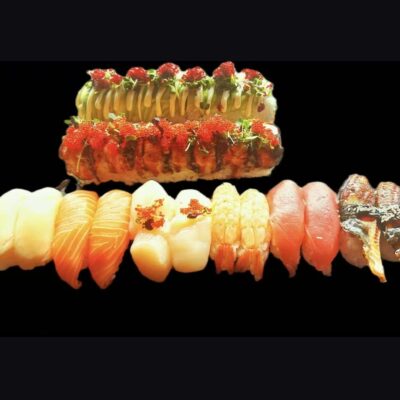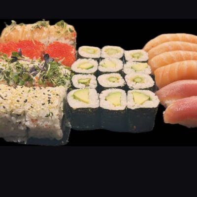 6 California, 2 Ebi Nigiri, 2 Thuna Nigiri, 2 Lachs…