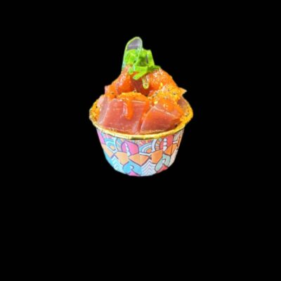 Knusprig frittierte Nori in Taco-Form gefüllt mit Reis, frischen Thunfischwürfeln,…